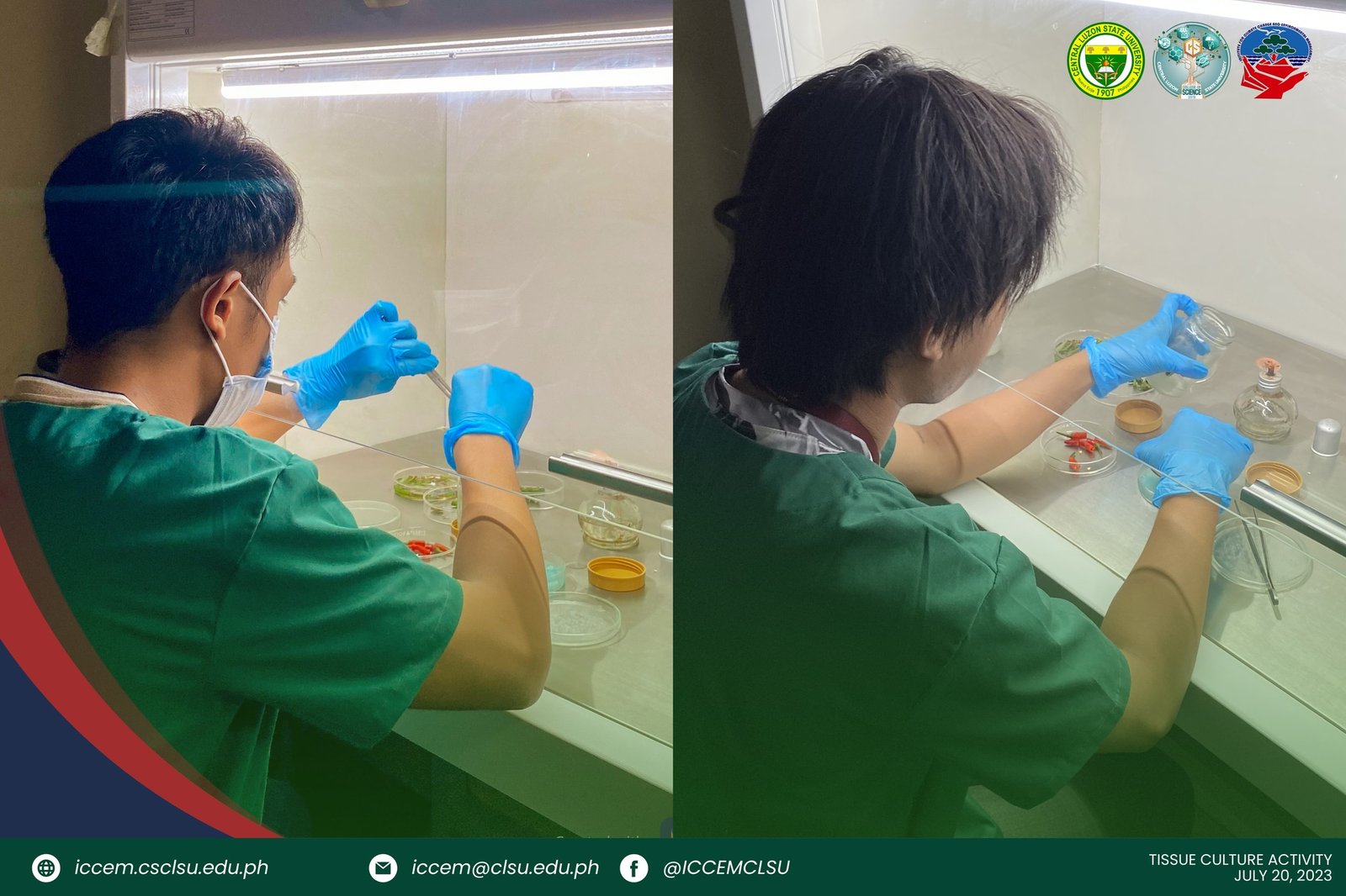 The Institute for Climate Change and Environmental Management (ICCEM) recently conducted a tissue planting activity using eggplant (Solanum melongena), pepper (Capsicum frutescens), and katmon (Dillenia philippinensis), a tree from the Dilleniaceae family that is endemic to the Philippines on July 20, 2023 at ICCEM’s Molecular and Biotechnology Laboratory to provide a hands-on experience for the participants and raise awareness about the importance of plant conservation.