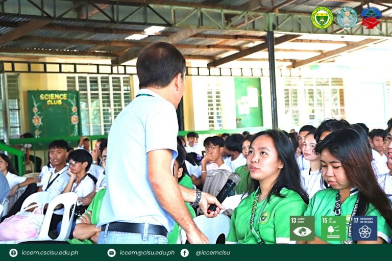 As part of this initiative, Prof. Roberto D. Pelayo from the Institute for Climate Change and Environmental Management (ICCCEM) was invited as a resource person to share his expertise on disaster preparedness. Prof. Pelayo delivered an engaging presentation titled “From Risk to Resilience: Navigating Disasters.” His insightful talk covered comprehensive strategies for disaster prevention, mitigation, and response, equipping students with practical tools to handle emergencies effectively.